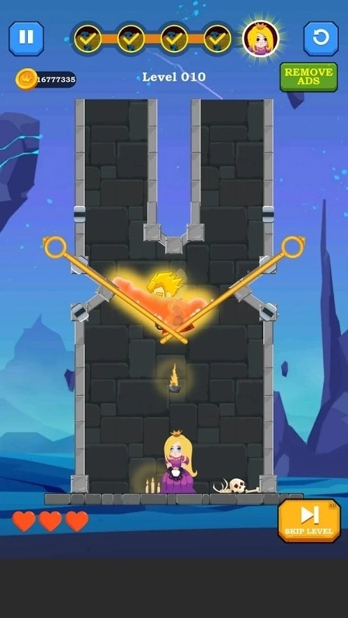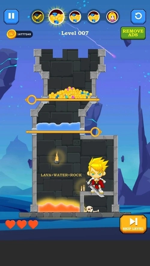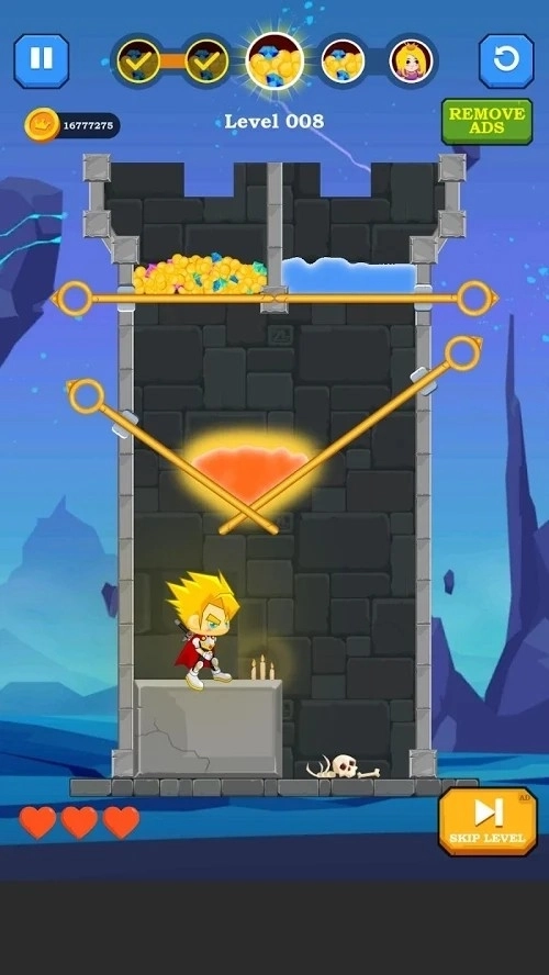游戏里你得多动脑筋深入思考,避开各种各样的危险,还要灵活运用水来扑灭火焰,挑战过程需要一定技巧,要是在挑战中不小心碰到尖刺陷阱就会掉血。