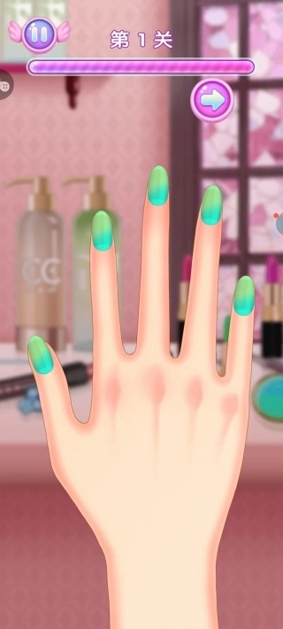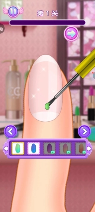 2、色彩搭配玩法,从海量指甲油中挑选心仪颜色,通过点击或滑动手势均匀涂抹在指甲上,还可尝试渐变效果,打造层次丰富的色彩基底。