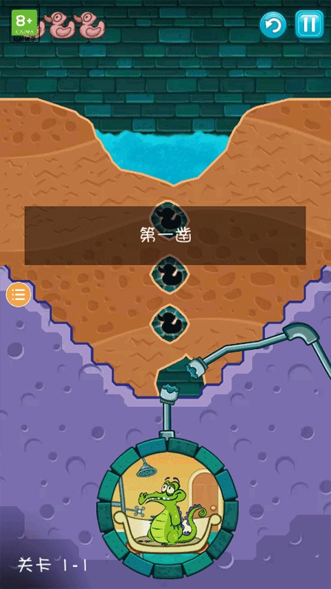 在1-20关的吊桥场景里,要是玩家能精准把握时机,在紫色酸液完全流尽的那一刻结束关卡,就能看到小鳄鱼泡在酸液里洗澡,而且不会导致通关失败。