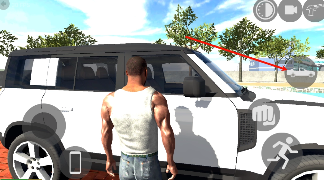 3、当你走近可以驾驶的车辆时,屏幕右侧会出现“上车”的交互按钮,点击该按钮就能进入驾驶模式。