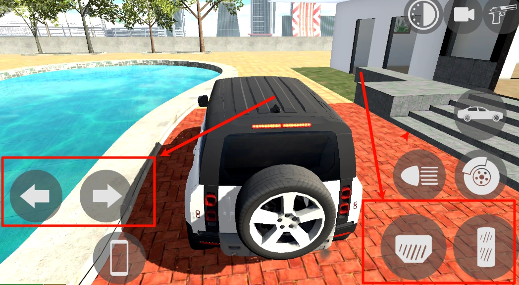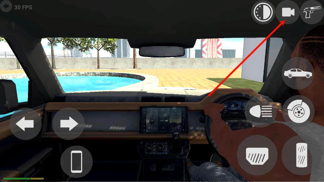 4、在驾驶界面里,左下方的两个按键各自负责转向操控,右下角的按键则集成了油门与刹车功能,通过合理配合这些按键,能够达成平稳起步或是高速过弯的操作效果。
