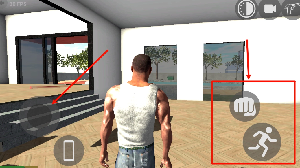 2、在角色操控上,左边的虚拟摇杆负责调整移动方向,右下角则配备了攻击键(以拳头图标显示)和奔跑键,助力你在步行模式下更敏捷地处理各类意外情况。