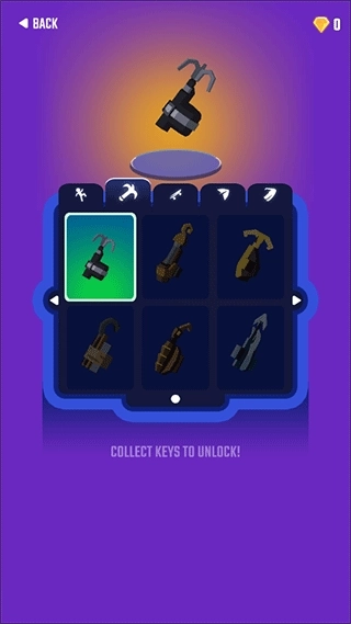 1、随后打开并进入游戏,点击“SKINS”选项,即可用钻石自由选购自己心仪的人物、滑板、抓钩等物品。