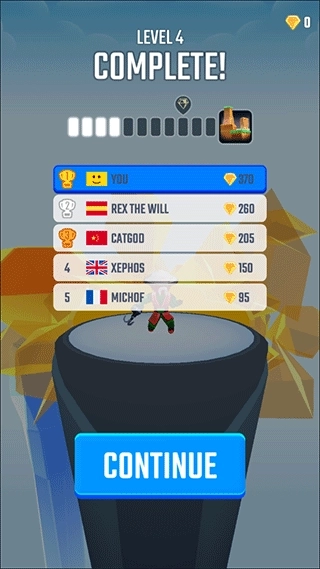 5、当我们抵达终点后,系统会生成一份排行统计,位列榜首的玩家将得到较为丰厚的金币奖励,这些金币可用于解锁各类皮肤。