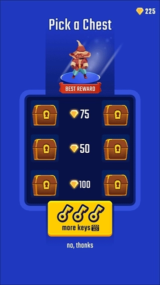 6、游戏过程中也能收集钥匙,每收集几个钥匙就能开启对应数量的宝箱,宝箱里装有数量不固定的金币。
