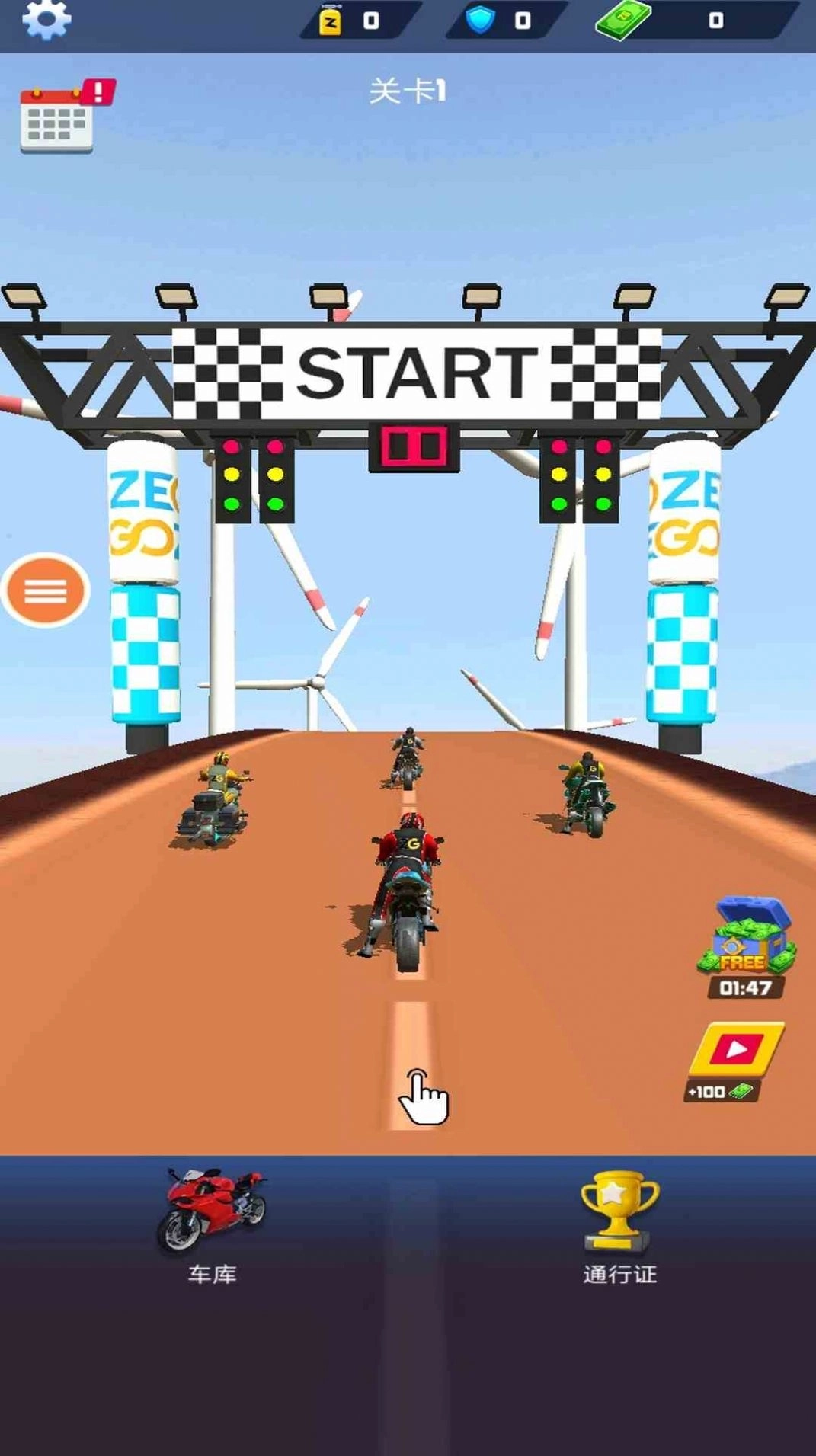 1、你可以通过倾斜设备或触摸屏幕来操控摩托车的转向与加速,并且能够运用道具和技能参与竞速。