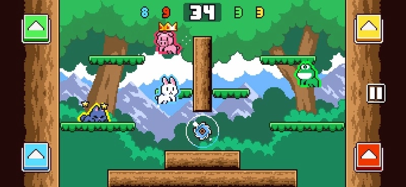 2.点击进行跳跃,连续点击能够调整角色的跳跃方向,踩踏对手就能获取积分