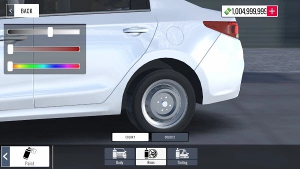 2、在“paint”选项中,能够调整赛车的外观颜色、轮毂颜色以及内饰颜色。