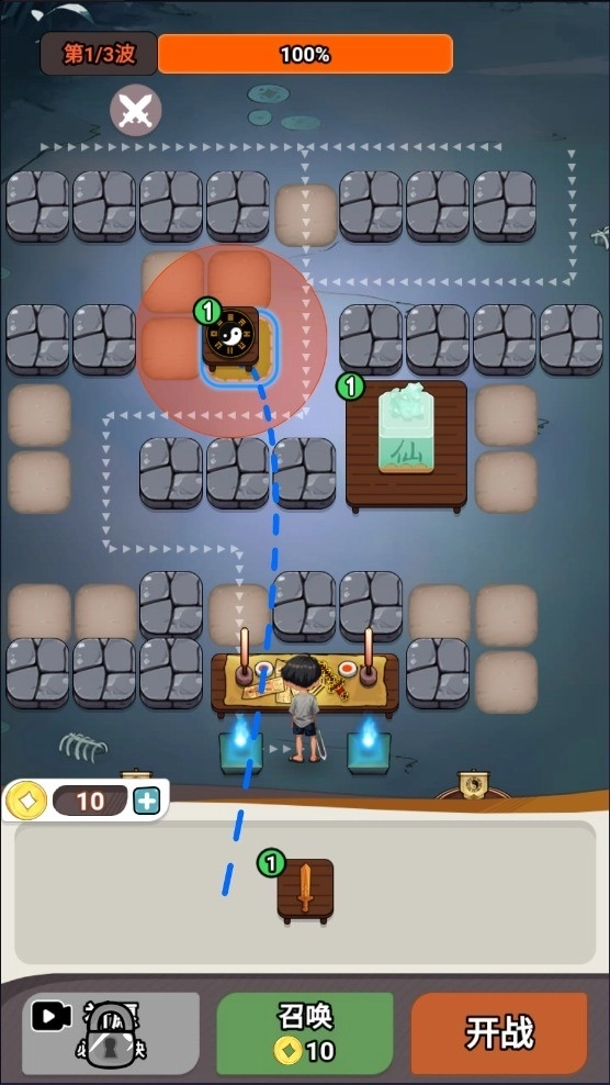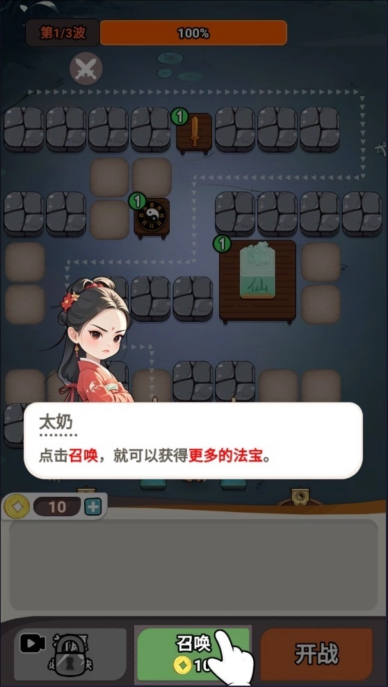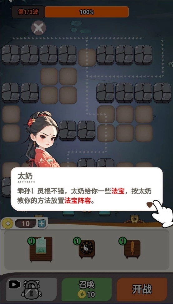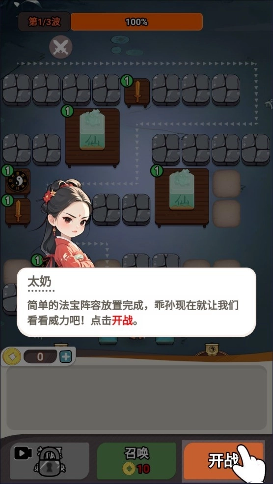 2、根据太奶的指引放置法宝阵容。