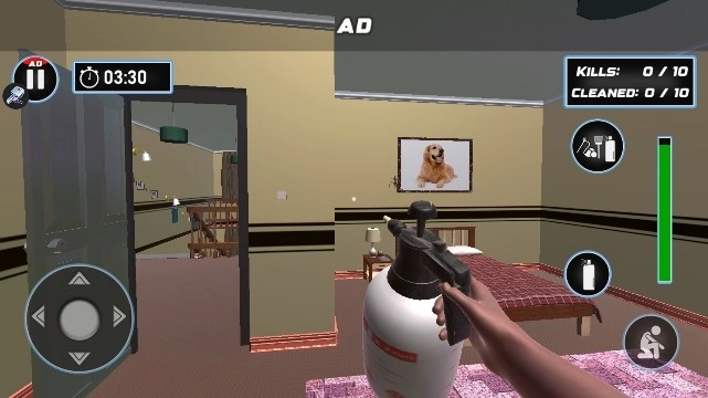 1.玩家采用第一人称视角游玩,能够自由移动并切换电蚊拍、驱虫喷雾等各类灭蚊道具,以此提升游戏的代入感。