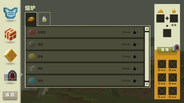 1、玩家能够借助方块搭建出各式各样的建筑,其中木屋是初期的避难之处,石墙可用来抵御外部敌人,仓库负责存放各类资源,熔炉则用于对矿石进行冶炼。