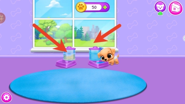 2、通过点击、拖拽等操作,及时响应狗狗的饥饿、清洁与情感需求——比如喂食、梳毛、互动玩耍,以此维持它的健康状态和快乐指数。
