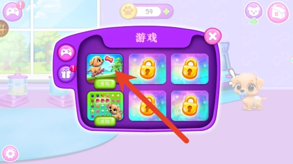 1、通过拖拽、点选等操作完成喂食、梳毛、玩耍等日常照料,助力狗狗健康快乐成长。