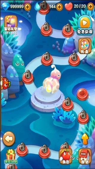 4.通过三星关卡可获取三把钥匙,解锁九宫格能得到道具碎片、水滴、钻石等奖励。关卡得分达到满分可额外获得20点水滴奖励!开启宝箱可获取大量钻石、水滴和道具,越往后奖励越丰厚。每个宝箱前两次开启均为免费,各位小伙伴可千万别错过这好机会!