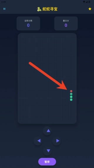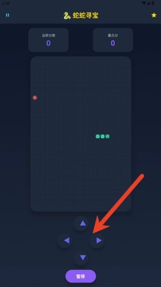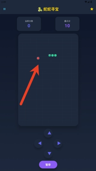 2、控制小蛇在地图里游动,只要用头部碰到散落的宝石就能完成收集,每收集一颗宝石,小蛇的身体就会增加一节。
