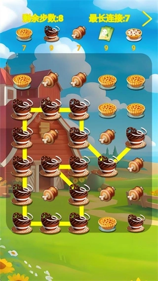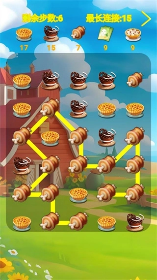 2、要在规定步数内完成目标分数,把场景里所有零散的蛋挞图案连接完整。