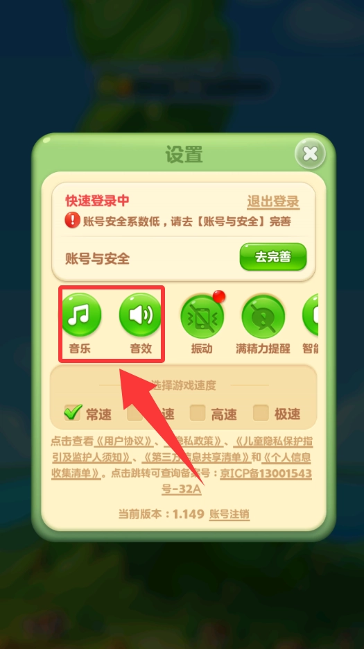 1、进入游戏界面点击设置把声音打开来体验游戏。