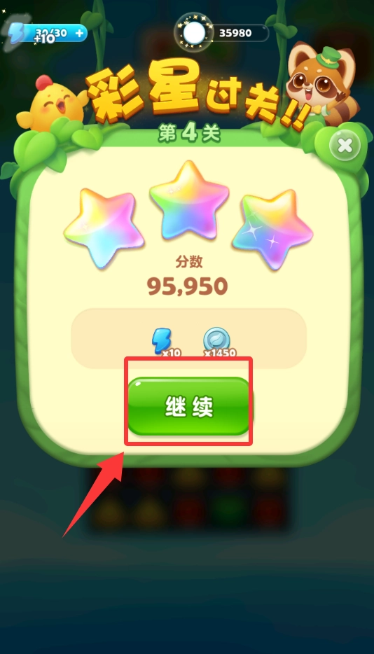 3、恭喜你,通关了,点击红色框框里的继续下一关。