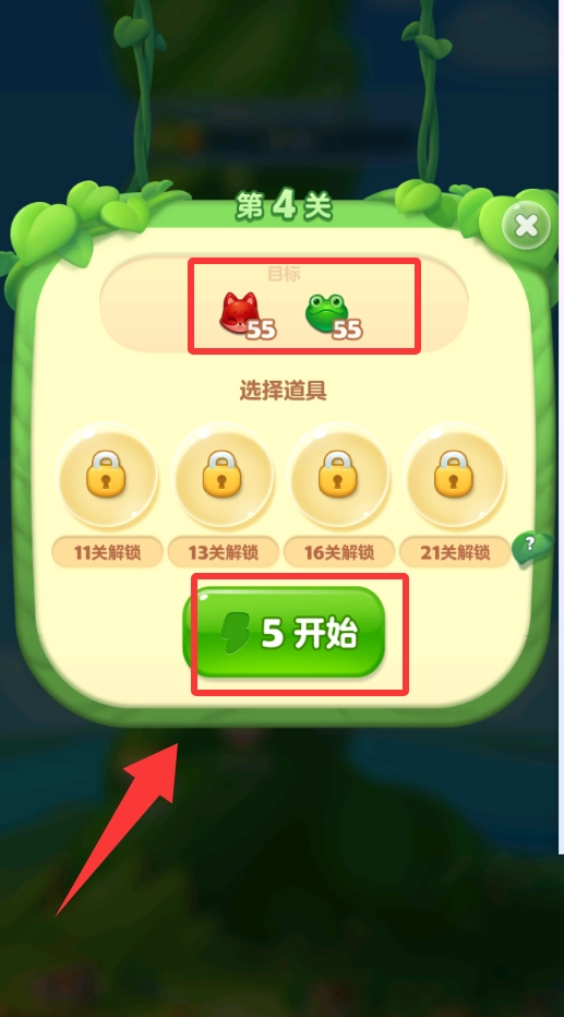 2、点击游戏,这个的目标是消灭青蛙和狐狸55个就可以通关了。