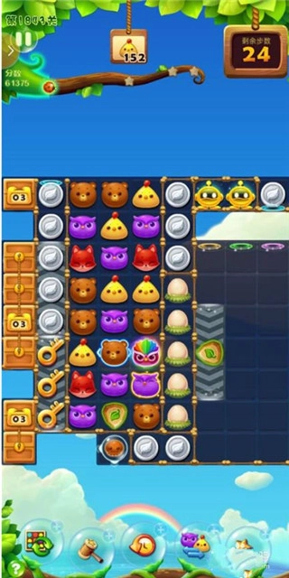 滑动手指让三个及以上的同色小动物横竖相连即可消除,完成每关的指定消除目标即可过关!