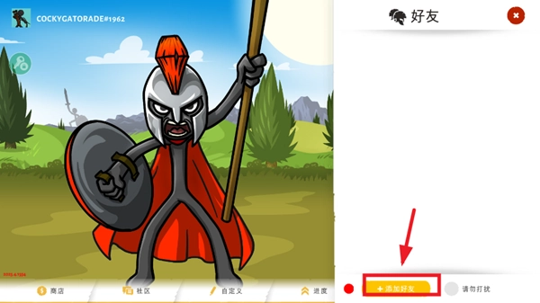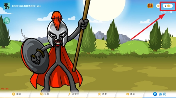 启动火柴人战争遗产三这款游戏,等进入到主界面,就点击右上角的那个图标。