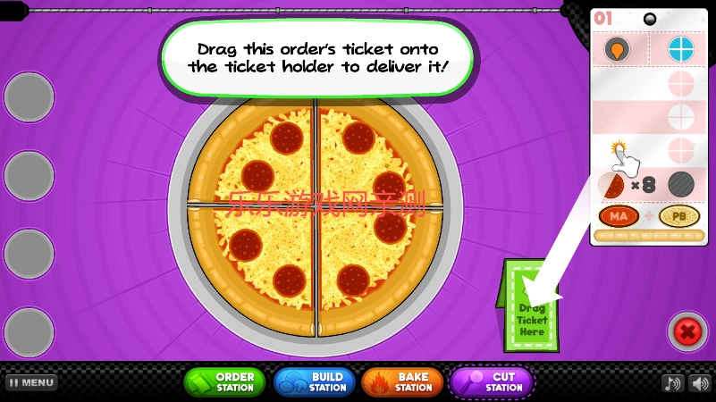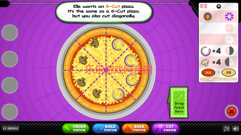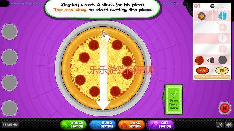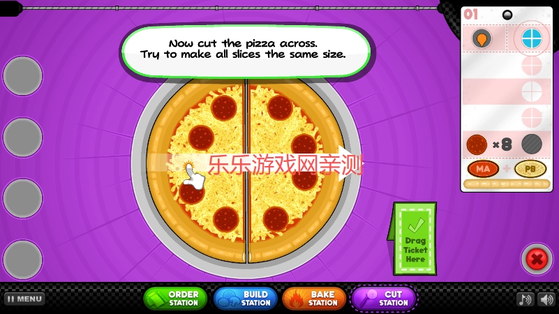 拖动屏幕上的切割线,调整其位置与角度,保证每块披萨都能满足订单的具体要求