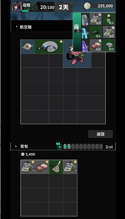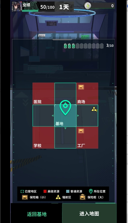 开了第三局正式玩,前期不管任务,每回合拿贵的装满包,最贵的放保险箱,任务用金币刷第三个得体力,感觉爆率高点就多跑几个点,少就只走两个物资点,体力点尽量不浪费,让每次休息后总数不超过10。