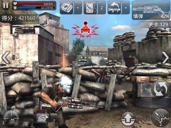 5、从脆弱不堪、极易被摧毁的掩体出发,向着敌方的直升机、吉普车以及重兵布防的军事基地发起猛烈进攻。在形形色色、各不相同的任务里,奋力击退一波接着一波凶悍残暴、来势汹汹的敌人。