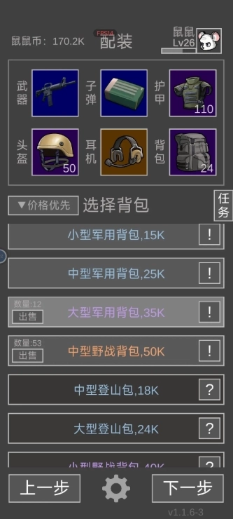 4、耳机、手雷、医疗用品这三样,务必优先选最好的,这部分钱绝对不能省。耳机能帮你更清楚地定位敌人位置;手雷在队友阵亡后清理战场很实用,没队友的话,就算你穿六头六甲也可能被人机阴死。背包选军用背包就行,小、中、大号都可以,但千万别带登山包——登山包横向只有三格,装大物件特别不方便。