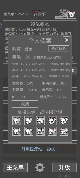 5、队友选择我们的前排突击鼠时,建议优先选紫色及以上品质的。要是暂时没找到合适的队友鼠,可先退出到选择难度界面再重新进入,这样能免看广告刷新队友鼠,但这种方式通常刷不出高级队友,尤其是在招募处等级还比较低的情况下。