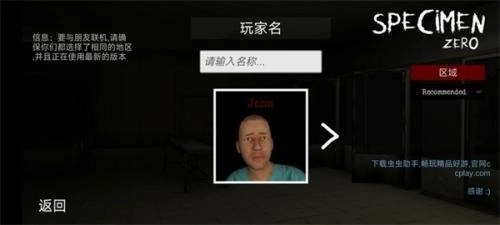 7、最后要留意的是,在标本零恐怖生存联机版里和朋友一起联机时,得保证你们都使用相同版本的游戏,并且在多人游戏菜单中选了相同的区域,具体可参考下图。
