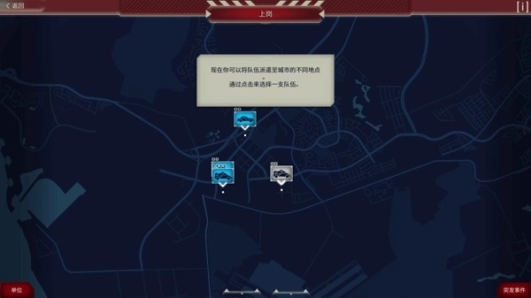 2、接下来点击左下角的单位,把队伍派遣到城市的不同地点,可通过双击或点击的方式来移动队伍。