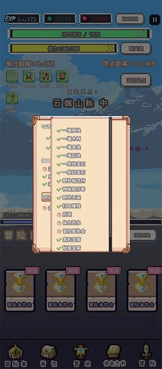 在挂机设置中,勾选宝箱药水和采集类选项;自动取消事件功能保留体力药水、历练与冒险者协会相关内容。