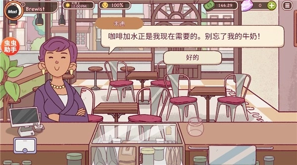 4、提升自身业务能力后,玩家能吸引更多客户前来购买咖啡,进而通过不断拓展客源来壮大自己的咖啡帝国,这其中的关键在于要专注于制作出高品质的精美咖啡。