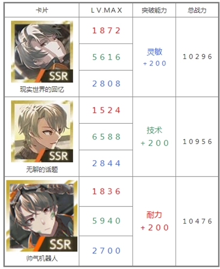 突破能力:其数值会额外为「同角色」的所有卡牌(R/SR/SSR)提供加成