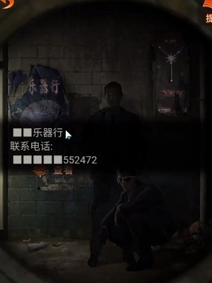 9、点击望远镜观察到两个催债人,接着点击他们身后的海报,获取到残缺的电话号码。