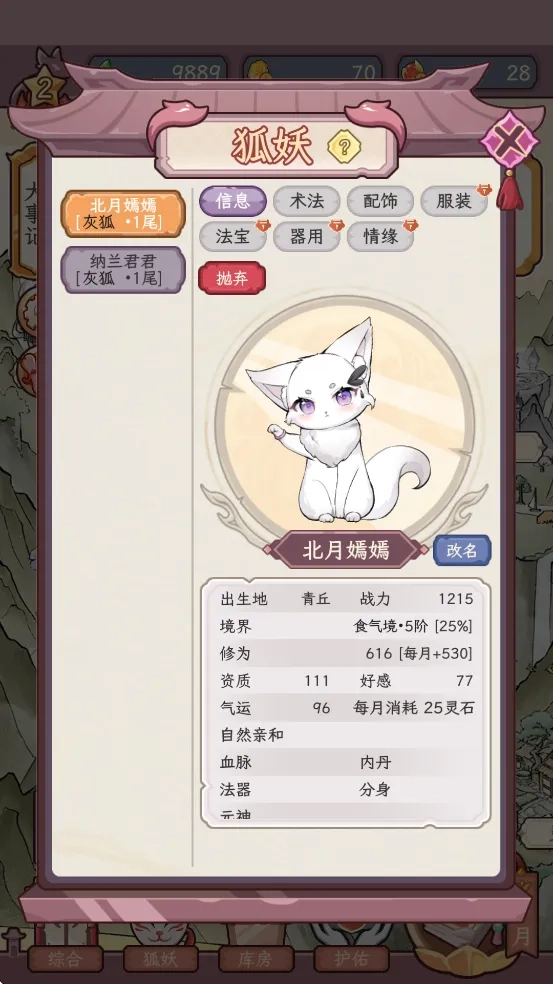 深度养成玩法:能陪狐妖一起修炼进化,从一尾到九尾,助力其度过雷劫升级成为绝色美人再到狐仙,还有多种养成方式,增添乐趣。