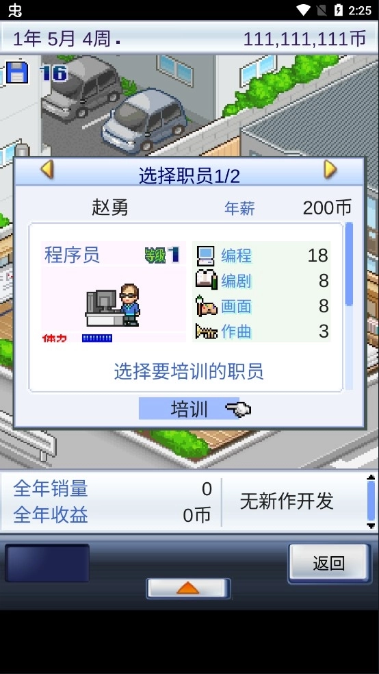 4、借助员工培训,解锁更多种类与更深层次的游戏开发能力。