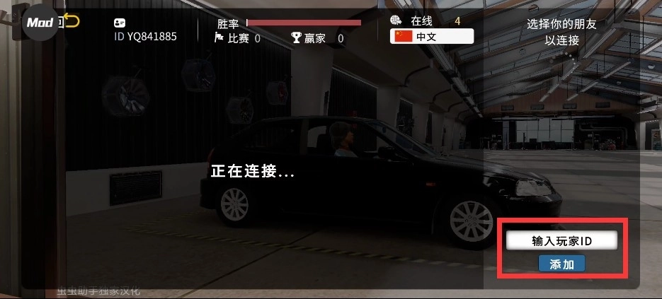 3、加载完成后,在服务器语言设置里选择“CHINESE/中文”。要是碰到加载卡顿的状况,可以试着点击右下角的“按ID添加好友”输入框,随便输入一些数字(或者留空),接着确认就能顺利进入了。