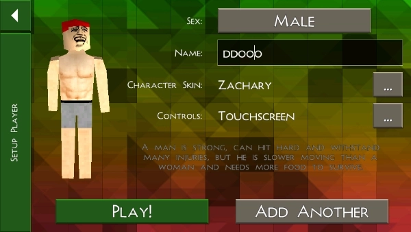 5、对于创建好的角色,我们可以对其服饰、名称等进行自定义设置,确认无误后点击“play”即可;若想体验双人或更多人模式,可点击“addanother”来创建更多角色。