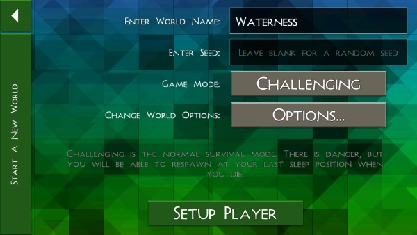 4、点击“newworld”后,我们需要对创建的世界进行自定义设置,设置完成后点击“setupplayer”