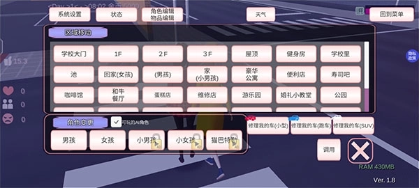 3.自由天地任你探索:开放式的游戏世界倡导玩家主动发掘,体验丰富多样的校园生活。