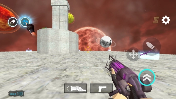 4、接着用控制枪进行放置操作,再使用地图上的枪械发起射击,怪物们便会展开攻击;
