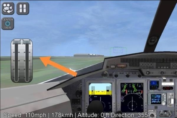 1、在正式起飞前,第一步要点击屏幕右侧的油门操纵杆,将其向前推动来提升发动机推力,从而为起飞工作做好准备。