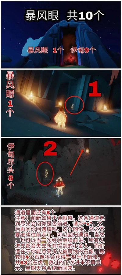 在探索王国的旅途中,旅人会在各处发现闪烁着蓝光的先祖灵魂。循着灵魂的记忆碎片,旅人能知晓更多先祖时代的过往与传说。当用蜡烛点亮石像后,旅人便会把先祖灵魂送回天际。