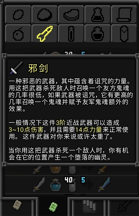 3、邪剑是一款机制独特的近战武器,它的特效触发条件并非要求用自身完成击杀——只要该武器处于当前持有的状态,任何敌人死亡时都会触发一次判定。随着武器不断被强化,判定的成功率会逐步提升。至于强化到多少等级才能实现100%触发,目前还没有确定的说法;根据实际测试,赌徒职业将其强化到+50时就已经能稳定触发特效了。不过实际上没必要达到这么极端的强化等级,毕竟一旦触发率拉满,战斗方式就会完全转变为非传统的近战模式。值得一提的是,哨卫法杖召唤出来的单位也属于“实体”,当这些单位释放激光后自动消失时,同样会触发邪剑的判定,所以可以利用这一点来实现“刷怪”循环。邪剑搭配术士职业使用的效果尤其明显,虽然属于娱乐性质的玩法,但在特殊挑战局中玩起来相当有乐趣。