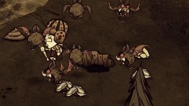 最菜的BOSS当属鹿鹅了,它还会下蛋呢。普通的成年鹿鹅击败后能掉落8块大肉和羽毛,羽毛可以用来制作羽毛扇和风向标。打鹿鹅的话,穿个猪皮帽加木甲就能硬扛着打,也可以用打三走一的技巧。至于小鹿鹅,它会变成旋风,这时候可别攻击,得等它停下来眩晕了再动手。建议一只一只地打,最好别硬扛。