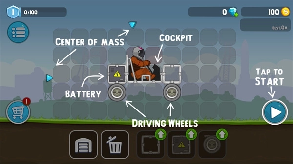 车辆并非采用预设的整体式结构,而是由轮胎、驾驶舱、动力核心、稳定翼等多个独立模块组合而成,所有模块均可灵活拆卸与重组。游戏搭载了高度自由的DIY装配系统,玩家能够根据不同关卡的特性,对车辆模块进行个性化搭配。比如在面对多坑洼的复杂地形时,可选择加装大直径宽胎与强力悬挂系统以提升通过性;若关卡中存在较多高空坠落的风险,则可以增加底部护甲与陀螺仪平衡器来增强稳定性。甚至有创意十足的玩家尝试打造“环形全包围轮组”的独特设计,以此实现车辆在行驶过程中真正意义上的永不翻车,这一玩法极大地激发了玩家的创造力与工程思维能力。