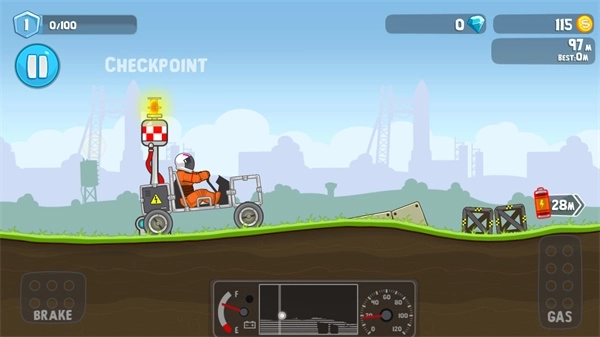 这款游戏运用横版物理模拟机制,核心在于车辆重心的掌控,而非一味追求速度竞赛。操作方式上,它舍弃了传统的虚拟方向盘,改用双按键驱动系统——左侧按键负责倒车,右侧按键用于加速。这样的设计需要玩家依据坡度、跳跃动作以及落地角度,即时调整前后推力,以此保持车身的平稳,特别是在飞跃悬崖或者通过晃动平台的场景中,这一点更为重要。和竞速类赛车游戏相比,本作品更看重平衡感与节奏的把握,具有相当丰富的操作深度。