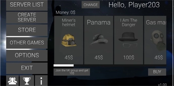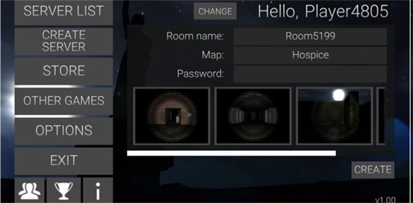 1、启动瘦长鬼影计划online后,主界面设有三个核心选项:进入房间大厅、创建私人房间和进入购买道具的商城入口,其他功能可根据实际需求暂不考虑。